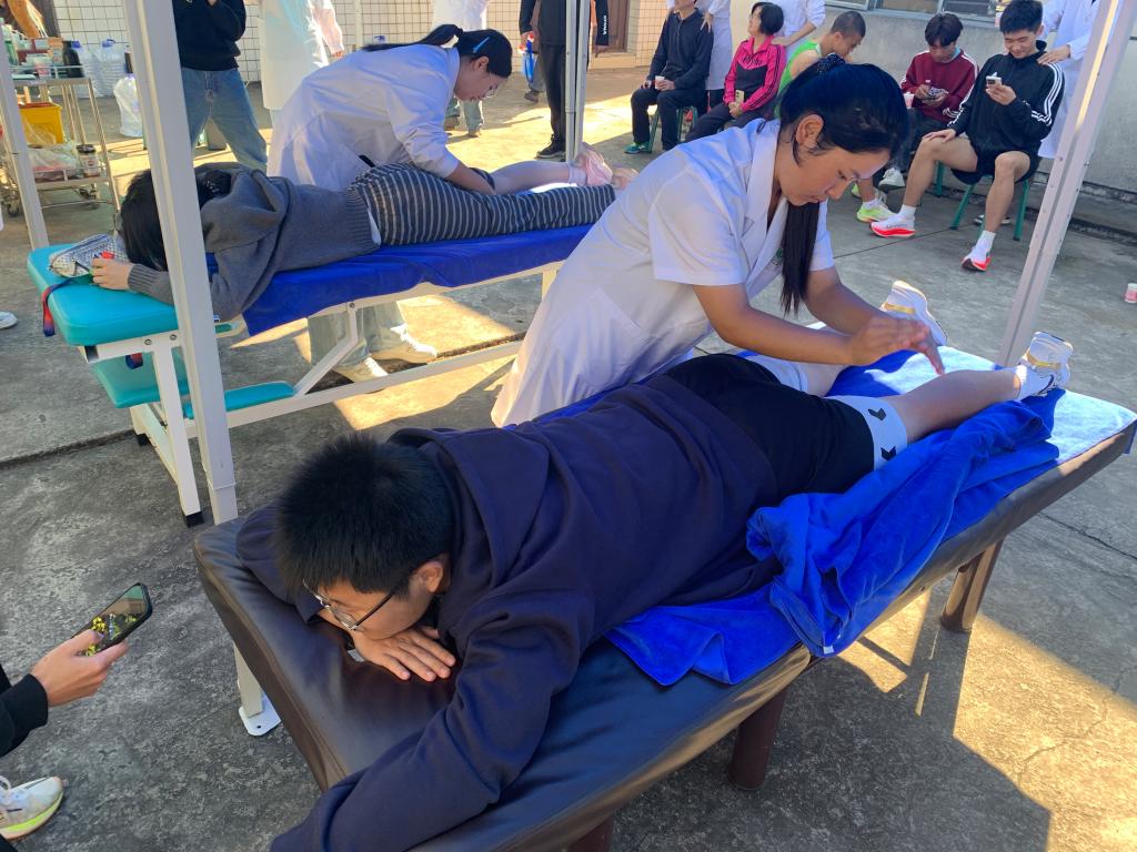 11月10日至12日,beat365第九届校运社团美食文化节如期举行。在运动会现场,康养学院、学工部、团委、体育部联动,充分发挥康养学院专业特色,由学院师生组建志愿服务队,为全校运动员提供赛后肌肉放松、颈部按摩、拔罐等服务和体验,累计服务3000余人次,以实际行动为比赛注入暖心活力,赢得师生一致好评。