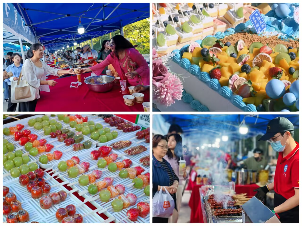 本届美食节共邀请60余家商户,打造了品类丰富的“美食集市”。贵州特色土豆丝饼、陕西肉夹馍、新疆羊肉串、武汉热干面等各地风味齐聚一堂,吸引师生及周边市民共计三万余人次前来打卡品尝。活动现场烟火缭绕、香气四溢,各美食摊位前人头攒动,气氛热烈。师生们穿梭于不同摊位之间,品尝着各地特色美食,脸上洋溢着满足与欢欣。