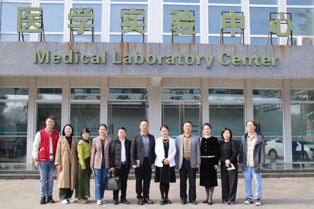 座谈结束后,谢江涛书记一行在兰玛、王鹃等人陪同下,实地参观了的医学实验中心,考查了实验中心的功能布局、仪器设备配置、实验教学开展等情况,对实验中心的规范化管理和高水平建设给予了高度肯定。
