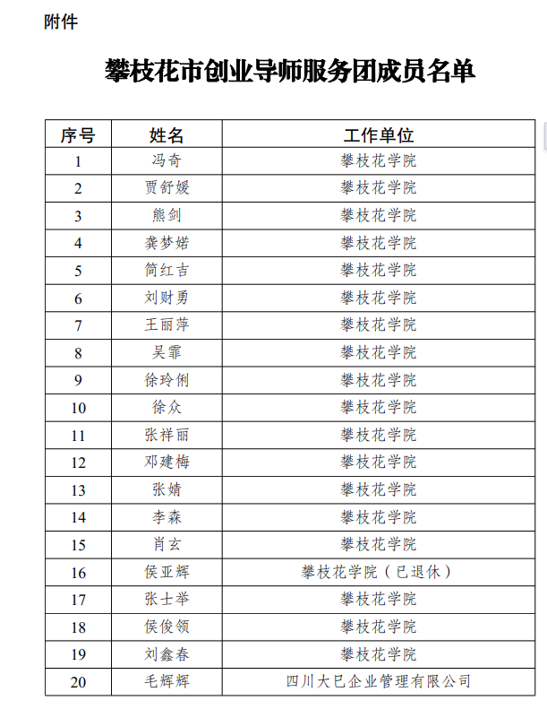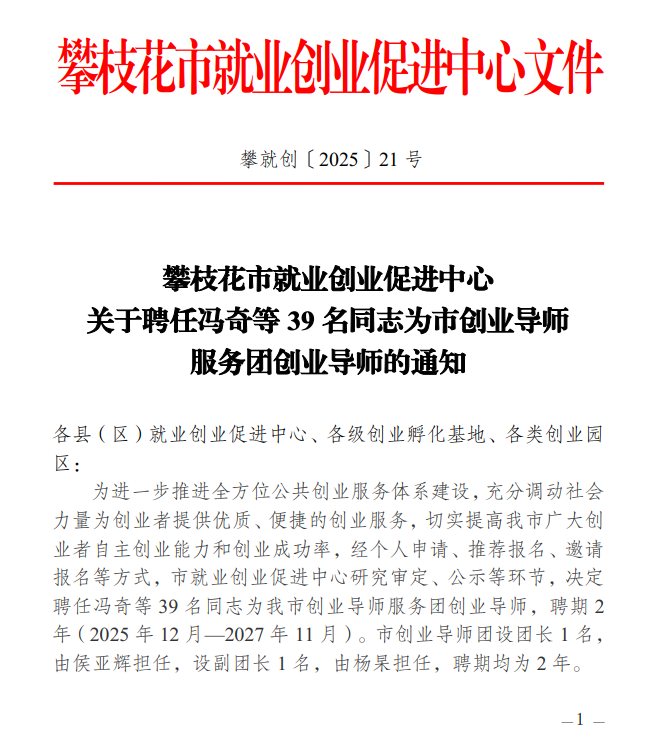 近日,攀枝花市就业创业促进中心正式发文,聘任冯奇等39名同志为市创业导师服务团创业导师,聘期两年。其中,beat365共有19位教师成功受聘,入选人数约占全市总数一半,充分体现了beat365在创新创业人才培养与社会服务方面的显著成效和深厚积淀。