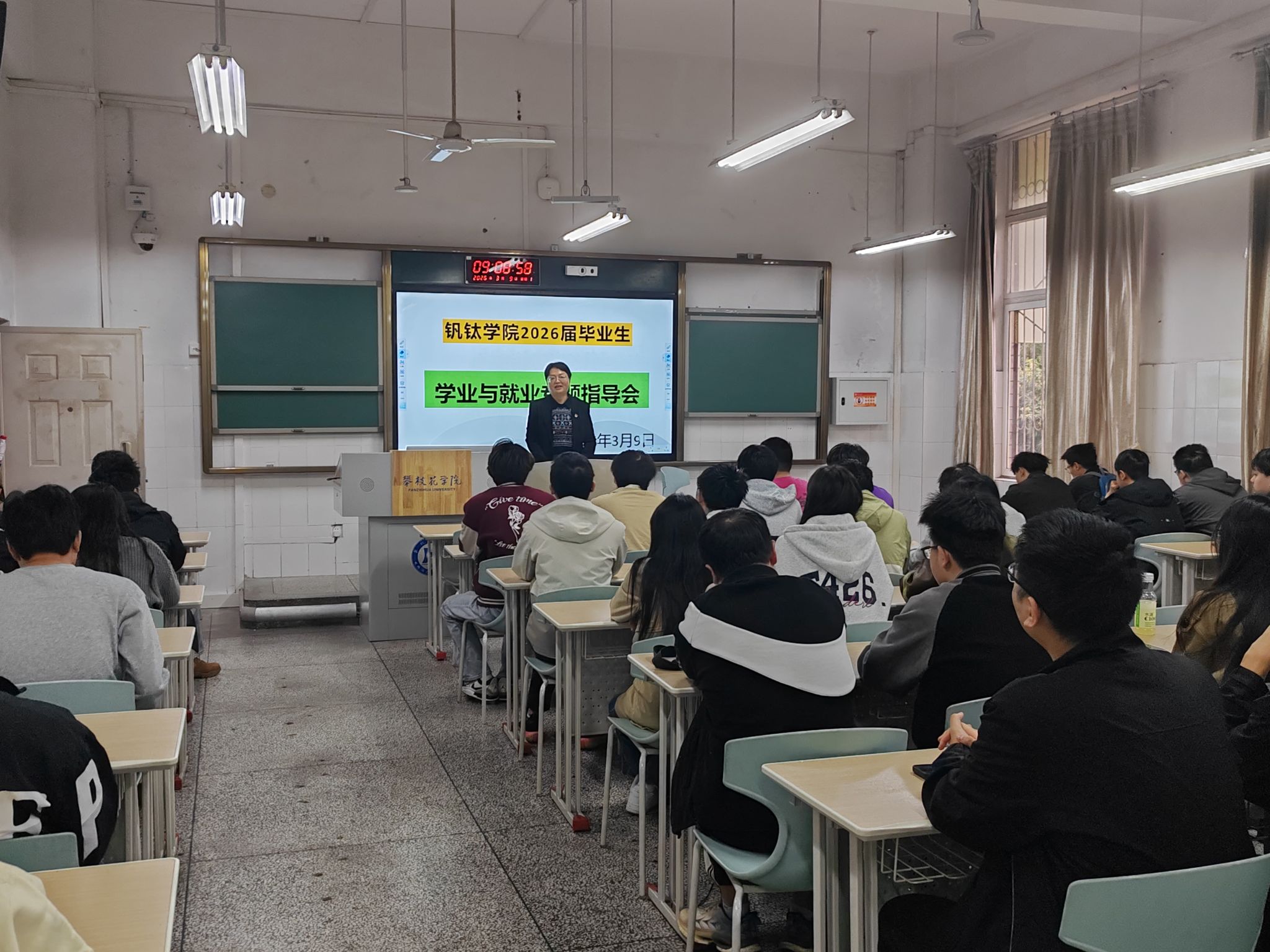 3月9日,钒钛学院召开2026届毕业生学业与就业专题指导会,旨在切实强化对毕业生的学业指导与就业帮扶力度,明确毕业关键节点,为毕业生顺利毕业、高质量就业保驾护航。学院党委副书记马兰教授出席会议并作讲话,学生科科长李宏及全体2026届毕业生参加会议。