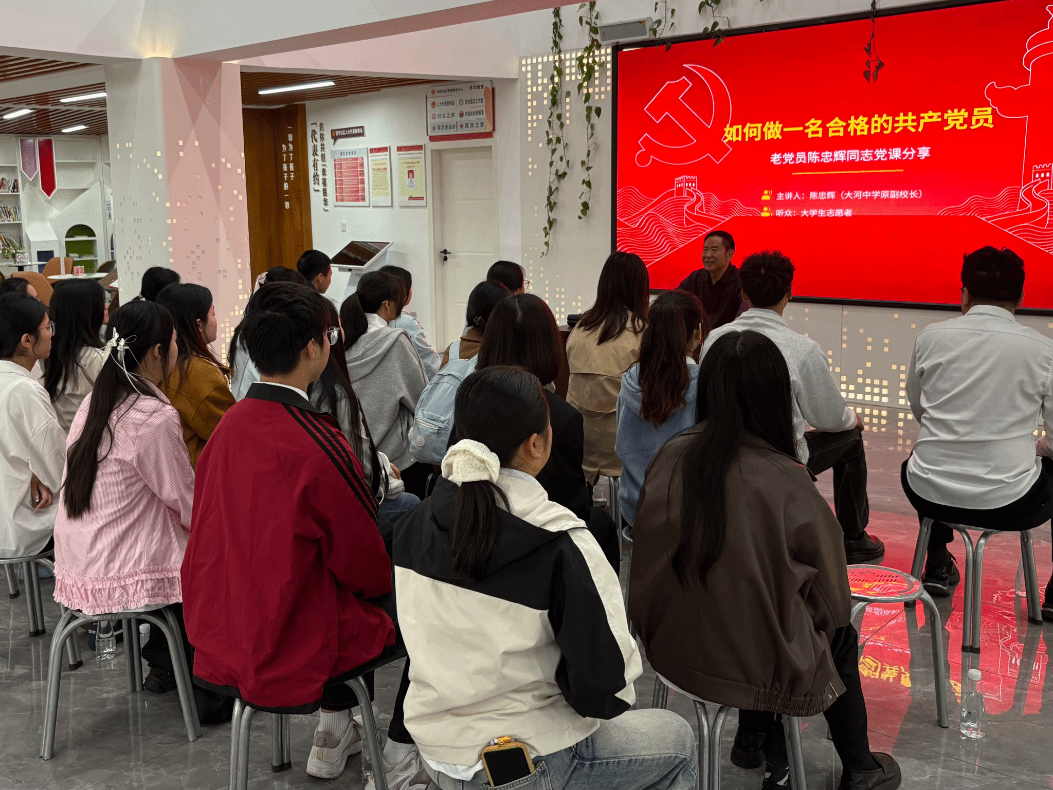 党课上,陈忠辉围绕“如何做一名合格的共产党员”主题,回顾了近四十年的教育生涯。从青年教师到学校管理者,尽管早年教学条件艰苦,他始终怀揣“为党育人、为国育才”的信念,以行动诠释党员的责任与担当。在场的学生党员和研究生们认真聆听、深受触动。大家纷纷表示,要以老党员为榜样,立足经管专业特色,将理论学习与社会实践相结合,努力成长为堪当民族复兴重任的时代新人。