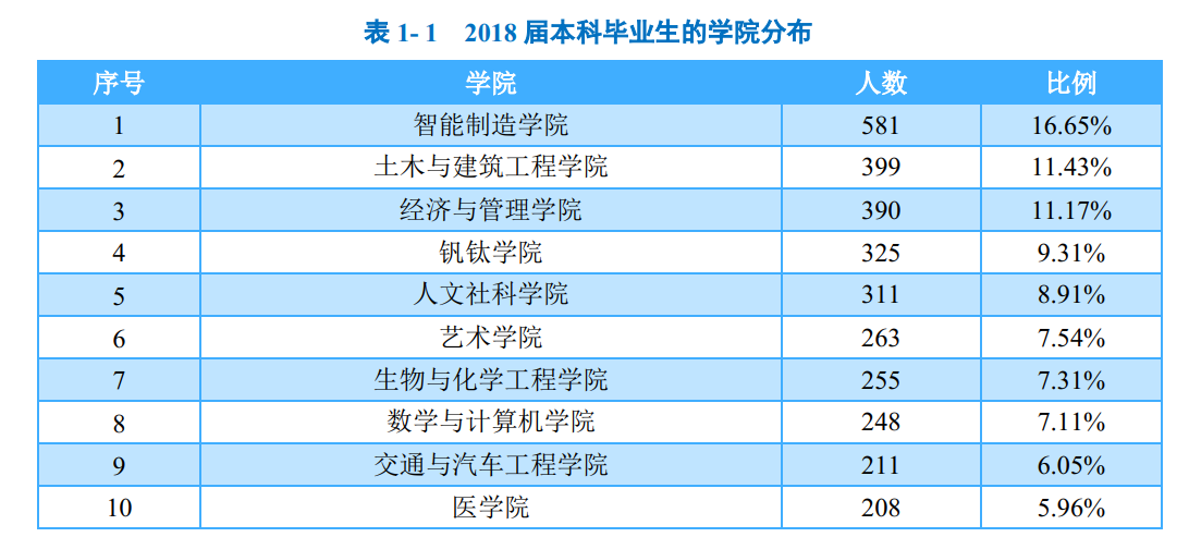 学校 2018 届本科毕业生分布在 12 个学院, 其中智能制造学院、 土木与建筑工
