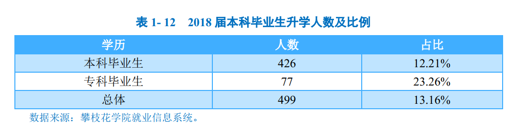 (一)国内升学学校2018届本科毕业生中,共有426人。选择国内升学深造,升学率为12.21%;专科毕业生中,共有77人选择国内升学深造,升学率为23.26%。