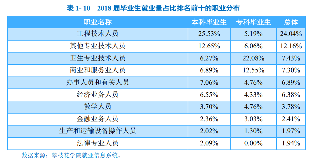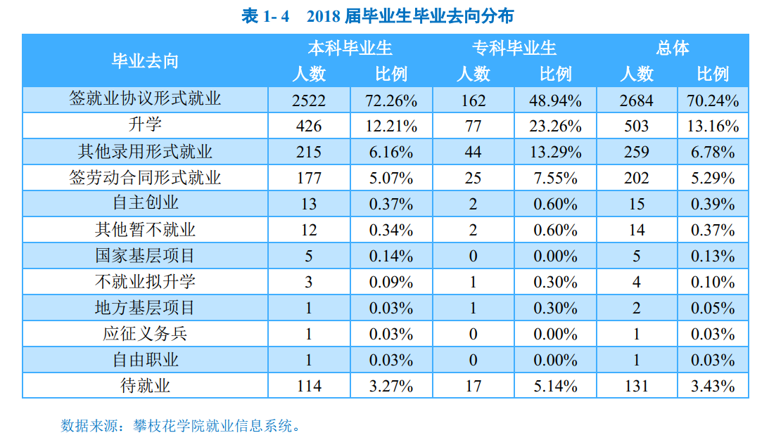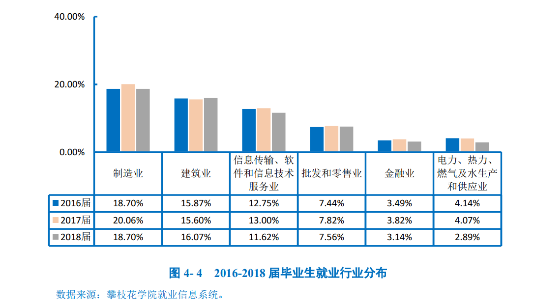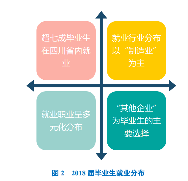 学校2018届毕业生中超七成毕业生选择在四川省内就业,服务本地经济发展;就业行业以“制造业”为主;就业职业呈多元化分布;就业单位以“其他企业”为主。