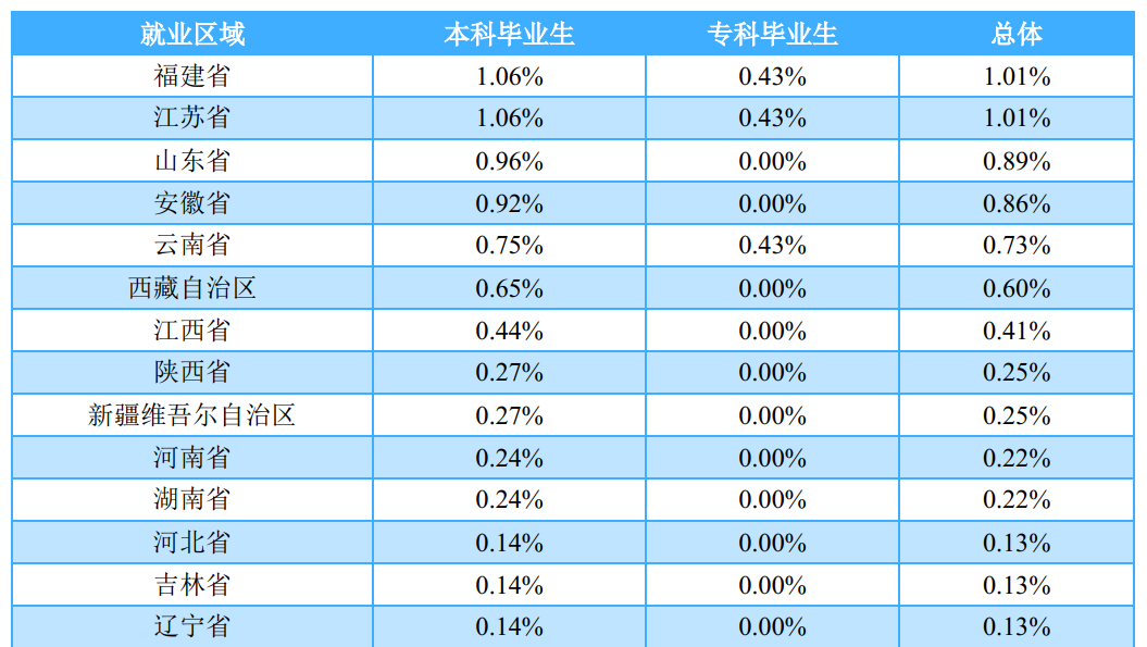 (一)就业地区分布