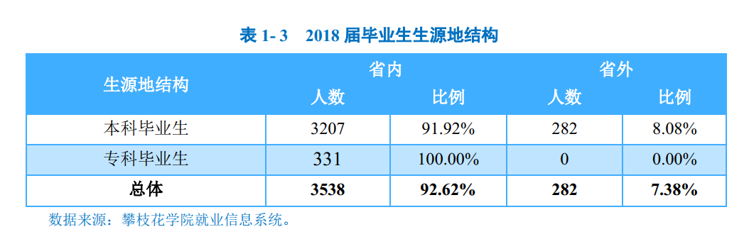 省内就业城市:四川省内就业的毕业生主要流向了成都市(41.28%)和攀枝花市(28.65%);其中,本科毕业生流向成都市(42.14%)的占比相对较高;专科毕业生则主要流向了攀枝花市(40.20%)。